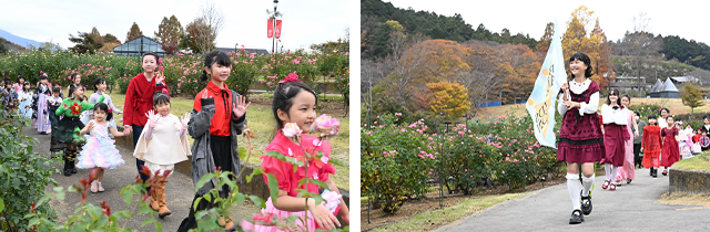 秋バラが咲いていて緑でいっぱいの園内で、子どもたちの笑顔溢れる素敵なステージを創り上げました。